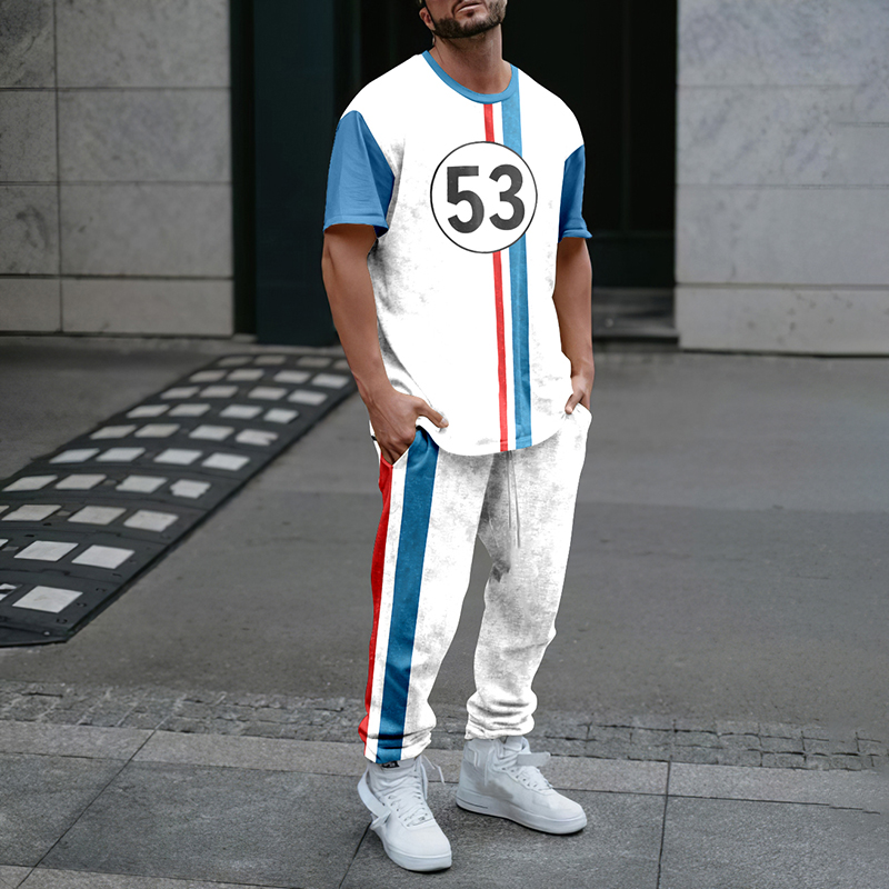 Casual Retro White T-Shirt And Pants Two Piece Set