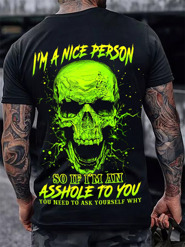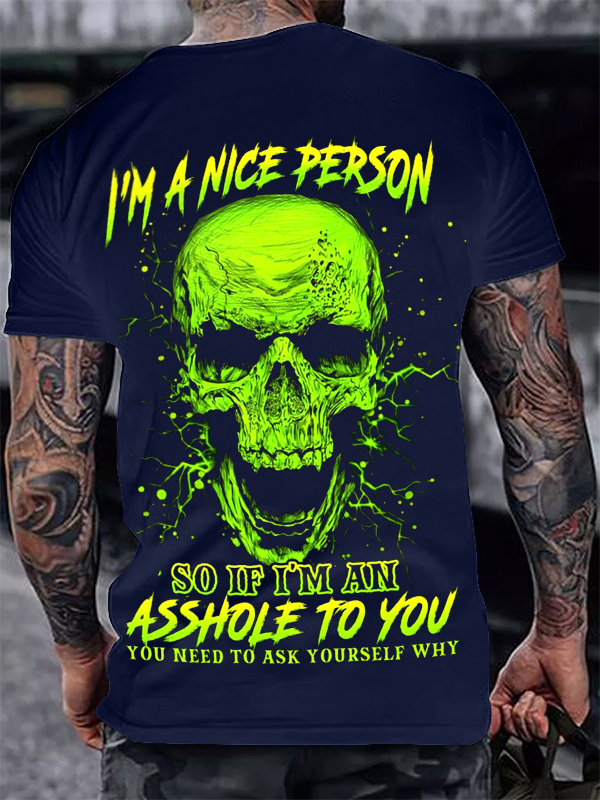 Dark Black Skull Print Men's Casual T-shirt