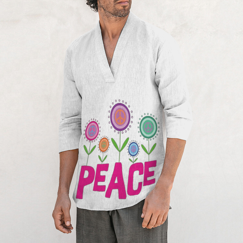 Men's V-Neck Casual Floral Print Shirt T-Shirt