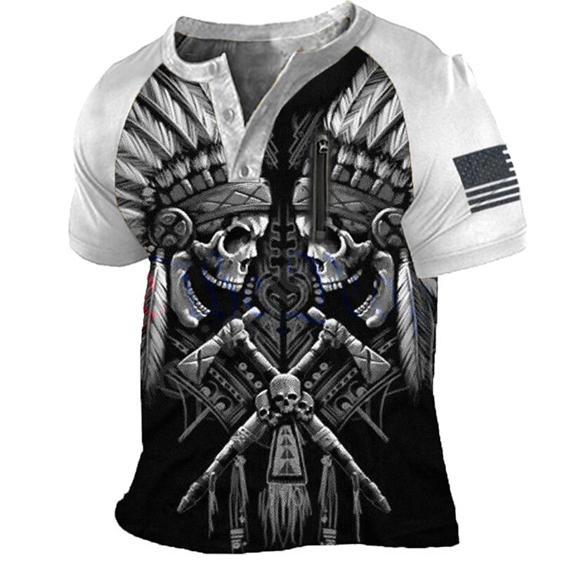 Men's T-shirt Graphic Patterned Color Block Skull Plus Size Henley
