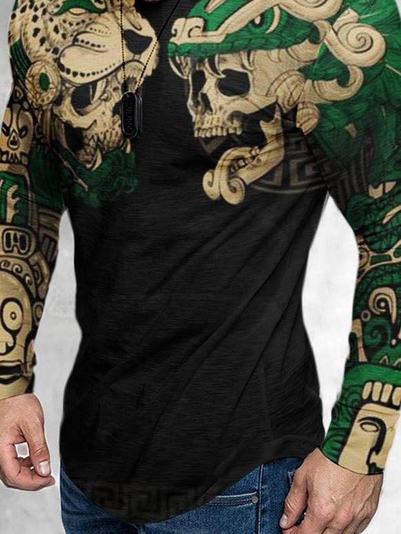 Men's Casual Long Sleeved Creative Green Skull Printing T-Shirt